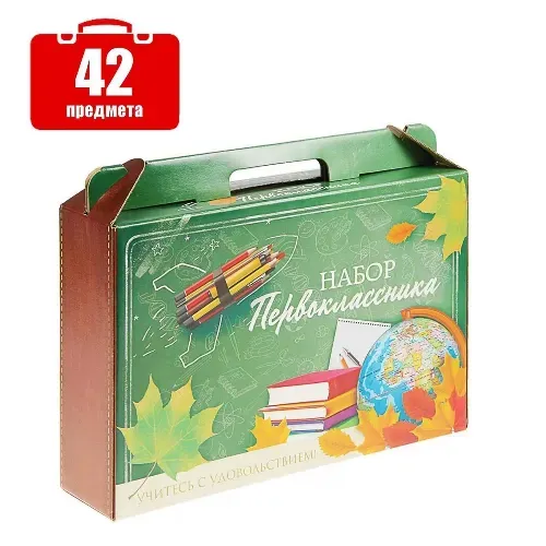 Набор первоклассника. Набор от Calligrata включает все необходимые предметы для первоклассника: от ручек и карандашей до линеек и тетрадей.