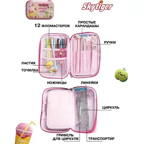 Пенал с 28 предметами. Пенал SkyTiger порадует любого ребенка своим оригинальным дизайном и полным набором канцелярских принадлежностей, необходимых для учебы.