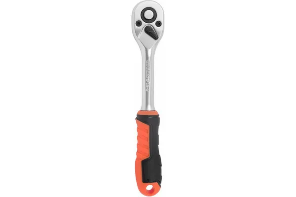 Секрет эффективности этой трещотки кроется в ее механизме: 72 зуба обеспечивают угол поворота всего в 5 градусов, что позволяет работать там, где для обычного ключа просто нет места для маневра. Кнопка быстрого сброса дает возможность менять насадки одной рукой, а флажок позволяет мгновенно переключать направление вращения. Прорезиненная ручка обеспечивает надежный хват. Этот инструмент значительно экономит время и силы, делает работу с крепежом быстрой и легкой.