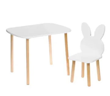 Этот набор мебели идеально подойдёт для маленьких детей. Стол и стул выполнены в милом дизайне с изображением белых ушек, что делает их привлекательными для малышей.