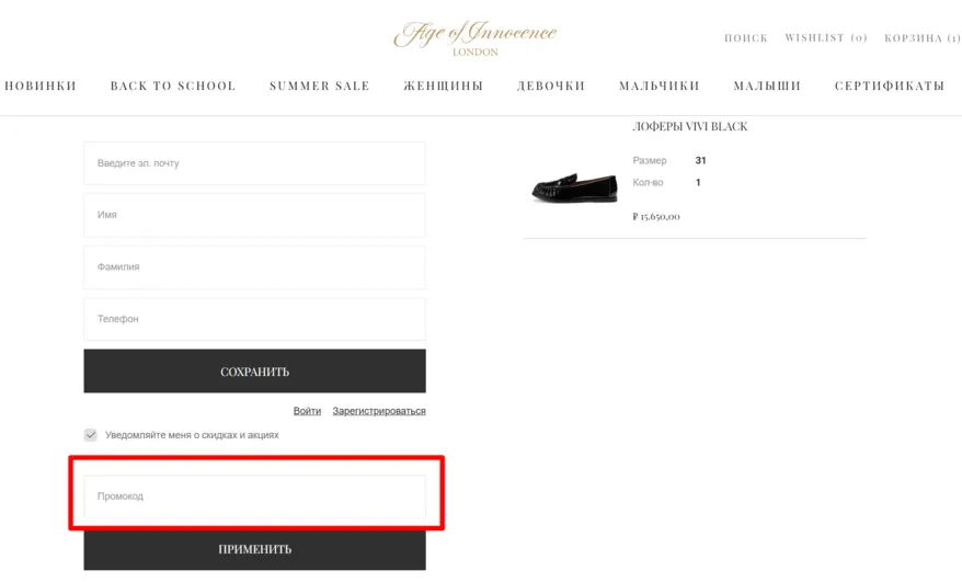 Age of Innocence — это английский бренд, который делает удобную и красивую обувь для женщин и детей. Компания была основана в 2016 году. Купить обувь бренда можно на сайте и в крупных мультибрендовых магазинах с доставкой по России и миру.. В каталоге — туфли, ботинки, лоферы, сандалии и аксессуары. Есть отдельная коллекция для девочек — модели лёгкие, дышащие и хорошо сидят на ноге. Вся обувь производится у учетом анатомических особенностей стопы. Если хотите покупать выгодно, подпишитесь на рассылку — по почте приходят промокоды, эксклюзивные скидки и предложения. Новым покупателям доступен промокод на первую покупку — это отличная возможность познакомиться с брендом. Также на сайте можно заказать подарочный сертификат — удобно, если ищете подарок.