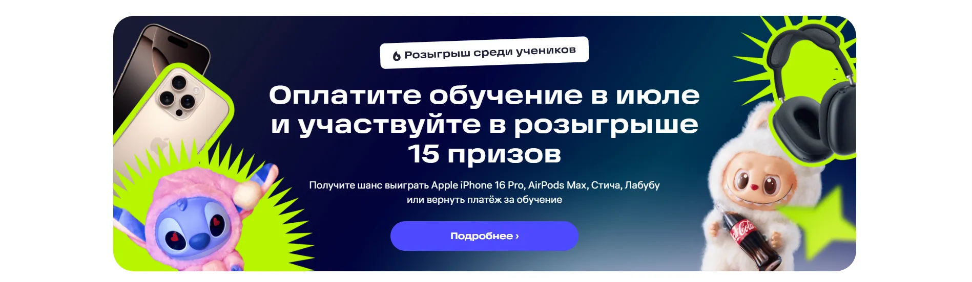 Участие в розыгрыше 15 призов при оплате обучения в июле