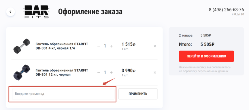Как активировать промокод Barfits