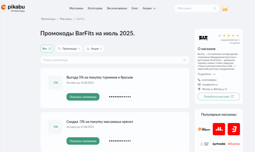 Где найти купоны и скидки в Barfits
