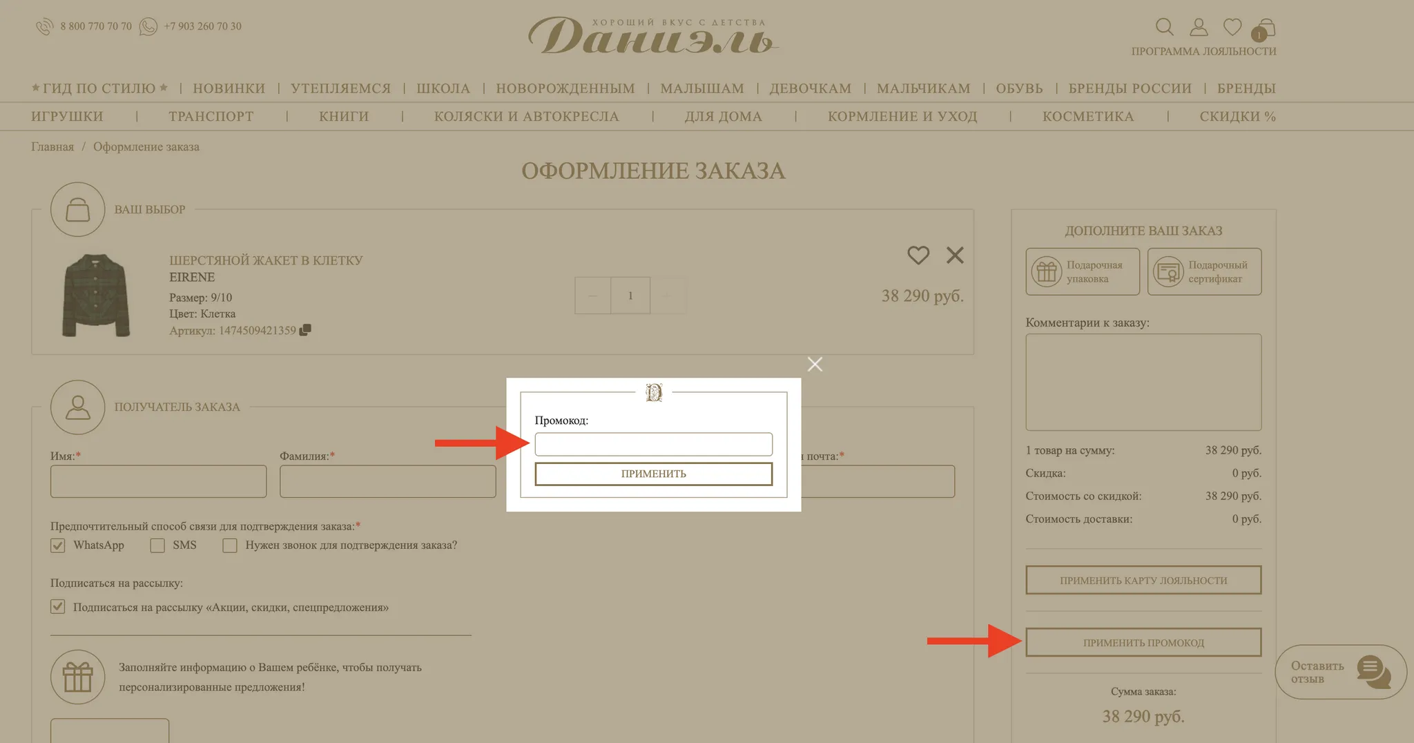 Приступая к процессу оформления заказа, обратите внимание на поле для ввода промокода.