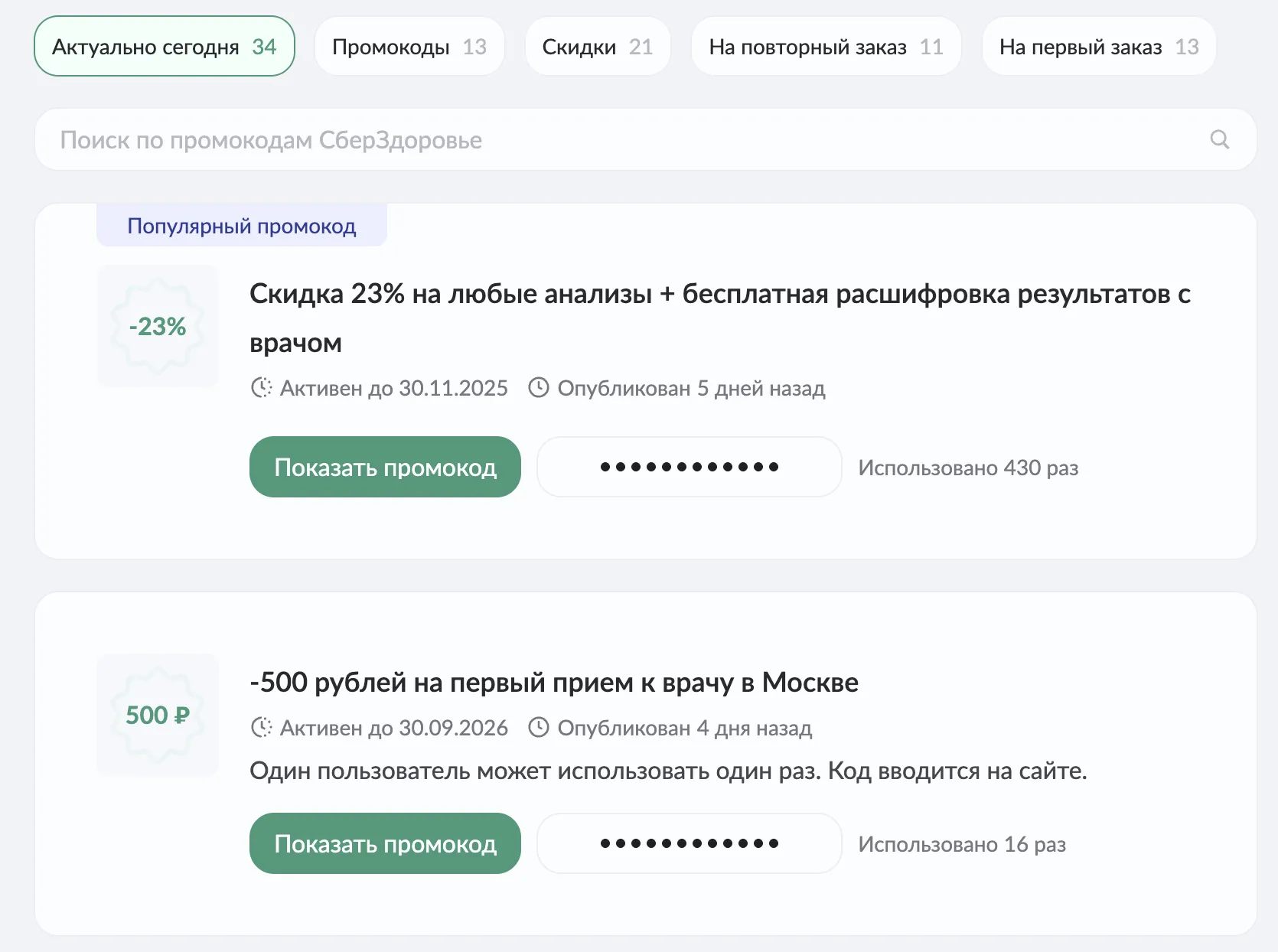 Промокоды СберЗдоровье на октябрь 2025