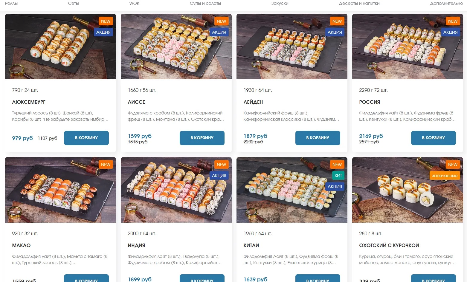 Меню представлено многообразием позиций: от классических роллов до эксклюзивных сетов для настоящих гурманов. В ресторане вы также можете оформить доставку воков, супов и салатов, закусок, десертов. Каждое блюдо приготовлено из свежих ингредиентов, что делает каждый заказ не только вкусным, но и полезным.