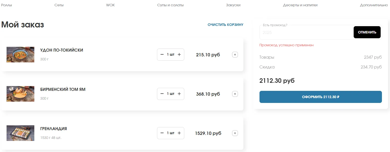 Завершите оформление заказа и наслаждайтесь вкусными блюдами японской кухни по сниженным ценам.
