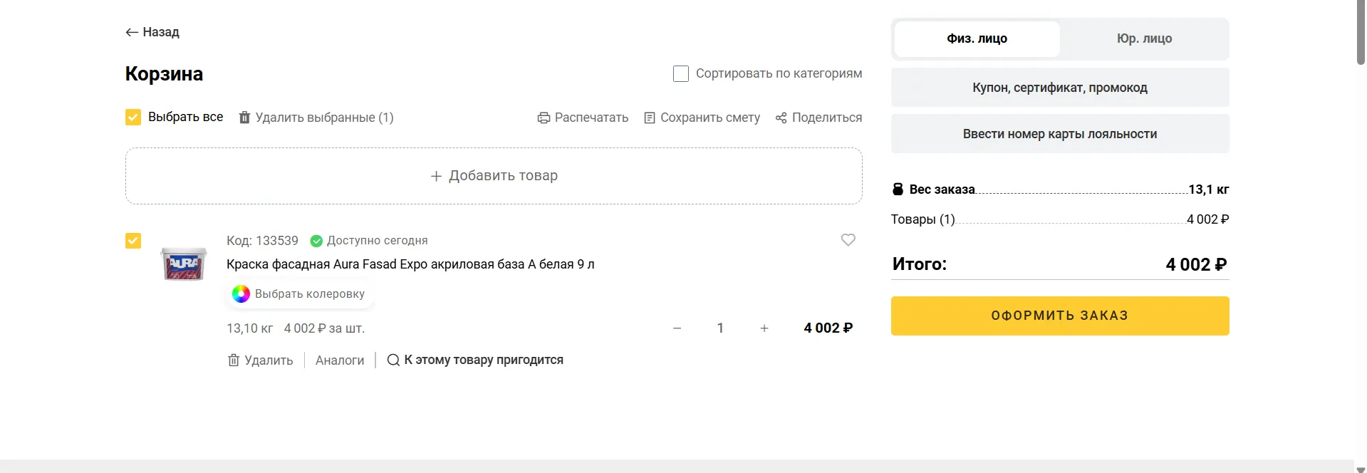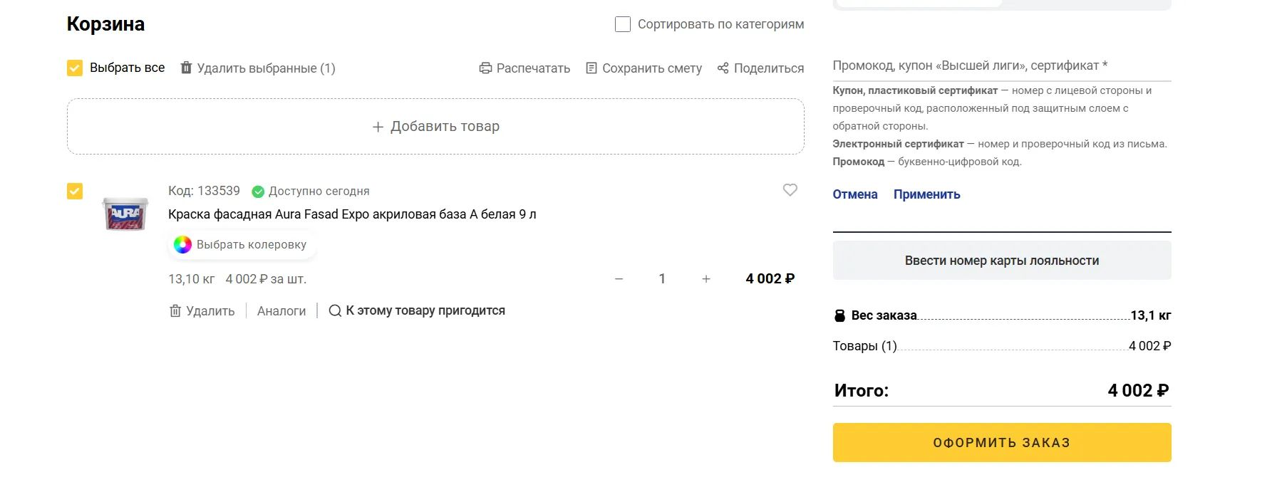 Перейдите в корзину и проверьте состав заказа.