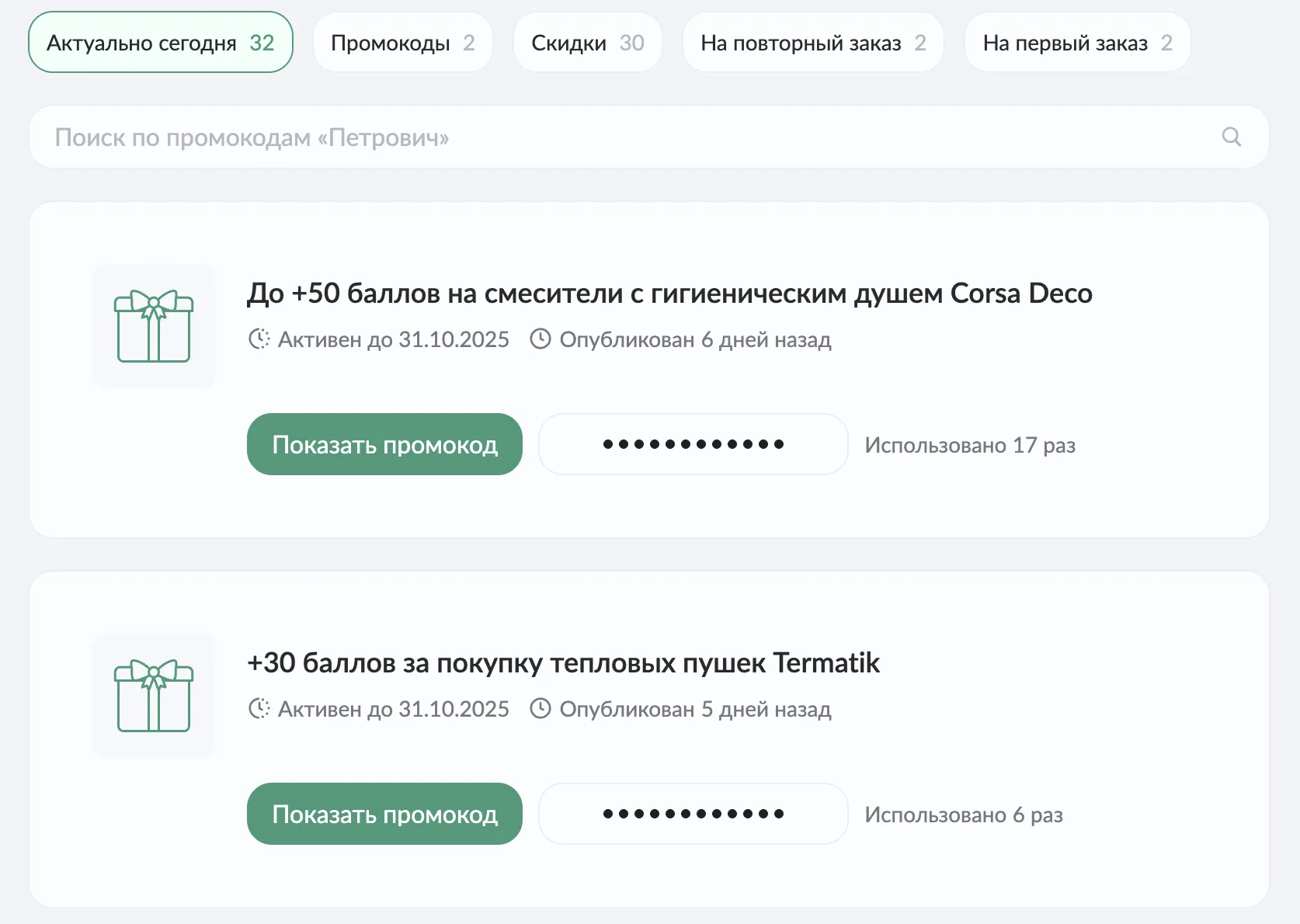 Активация промокода Петрович