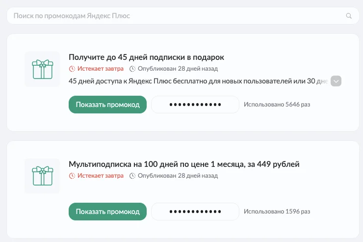 Активируйте промокод Яндекс Плюса – с его помощью вы сможете получить бесплатный доступ или же скидку на продление.