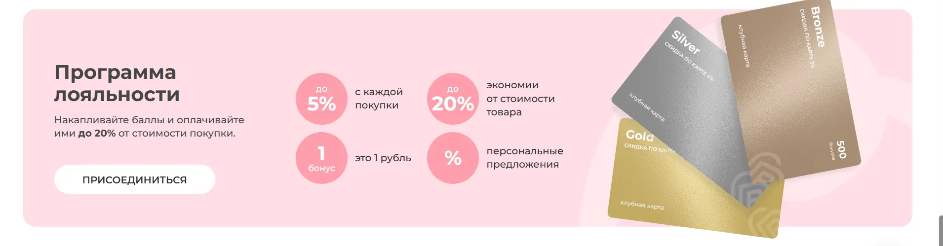 Отличный способ получить выгоду — участие в программе лояльности. Зарегистрировавшись, вы сразу получаете 500 приветственных бонусов. В дальнейшем с каждой покупки начисляется кешбэк до 5%, а накопленными баллами можно оплатить до 20% от стоимости следующих заказов. Кроме того, за подписку на новостную рассылку или на страницы магазина в соцсетях можно получить дополнительный купон на скидку. Использование промокодов — это еще один проверенный метод снизить итоговую сумму в корзине.