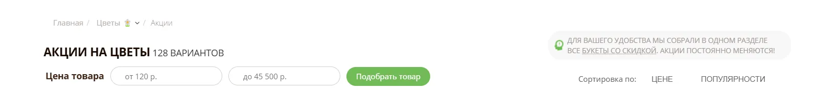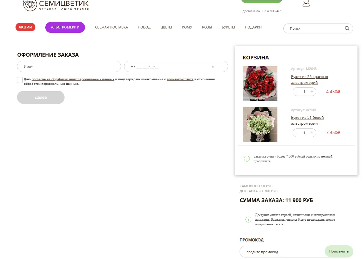 Семицветик регулярно обновляет список специальных предложений, благодаря которым вы можете приобрести прекрасные цветочные композиции по сниженным ценам. Не упустите возможность порадовать близких, потратив меньше!